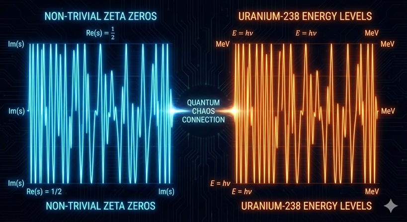 ゼータ関数の「零点が並ぶ間隔の法則」が、ウランなどの「重い原子核のエネルギー準位」の間隔と完全に一致することが判明しています。これは、素数が宇宙の物理法則そのものを反映している可能性を示唆しています。