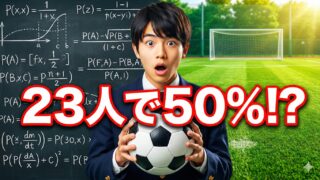 数学にまつわる雑学 誕生日のパラドックス解説!サッカーの試合で同じ誕生日はいる? 「直感は信じられない」を証明する誕生日のパラドックス。23人で50%を超える計算式や、自分と同じ誕生日を見つけるのに必要な人数(253人)との違いもスッキリ分かります。 2025.12.08 数学にまつわる雑学